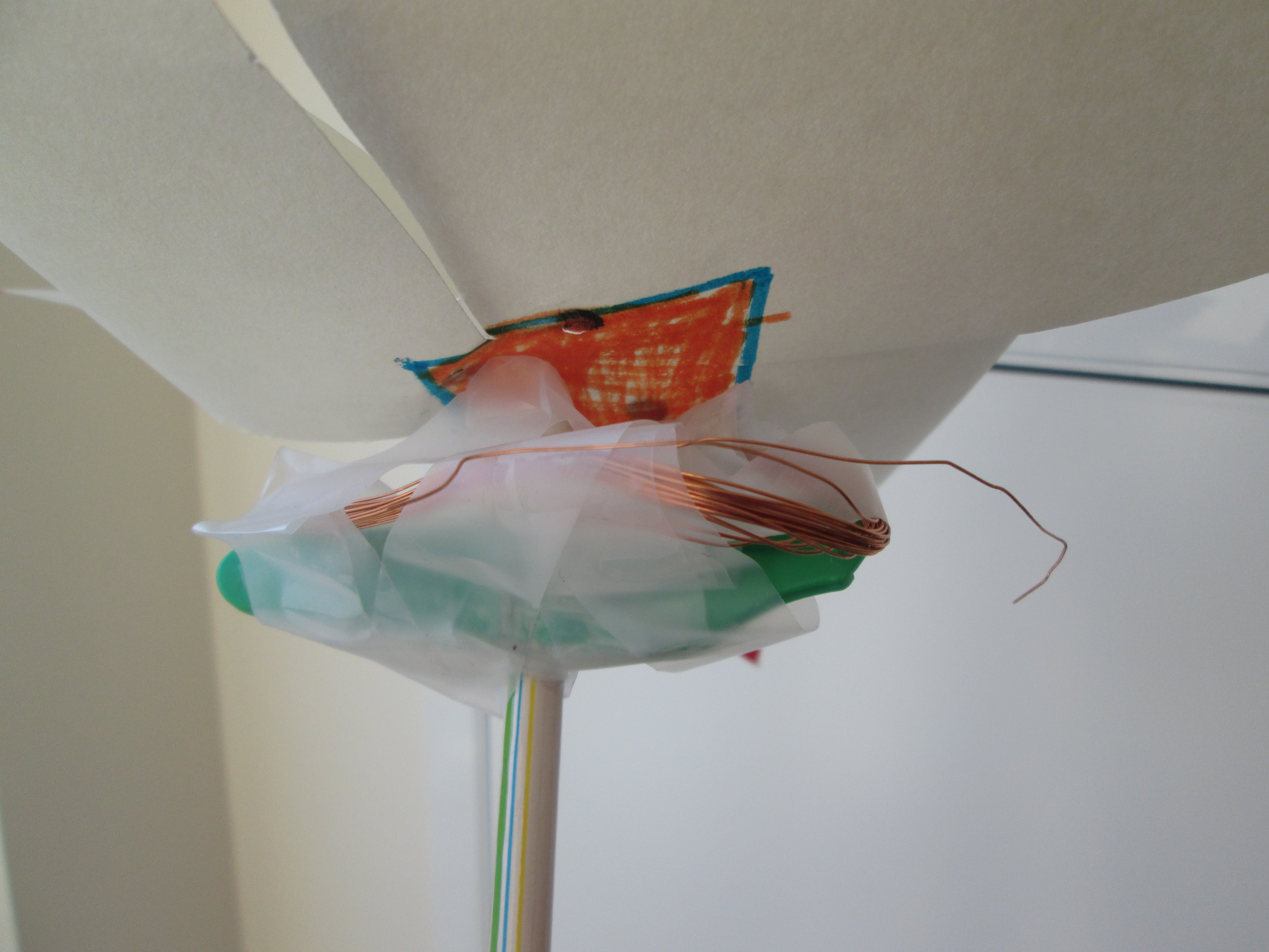 First by creating a windmill using paper, pin and a pencil. Magnets were embedded on the moving arms while a copper coil (60 turns) was attached to the pencil below the moving arms. When the arms of the paper windmill rotated, it produced energy.