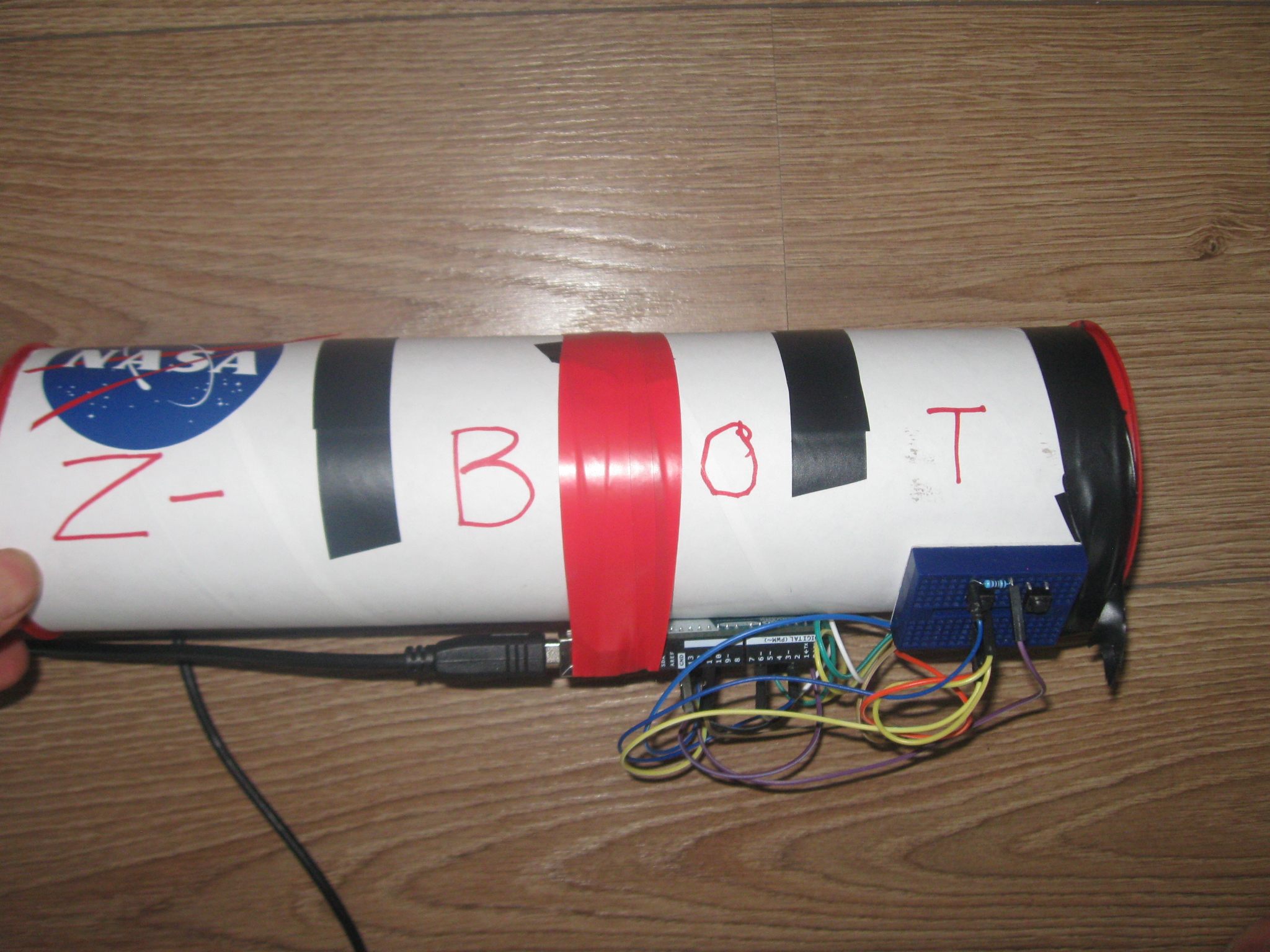 This led to creation of Z-Bot scientific tool. Z-Bot will be a sturdy, low-cost tool which can be used on Earth (in schools and homes) as well as in Space to get spectrum of bright objects and have them transmitted on the screen which can then be seen by the entire team (including remotely). It makes use of diffraction grating got by cutting an old CD Rom, a web camera, an Arduino, and a cardboard tube.