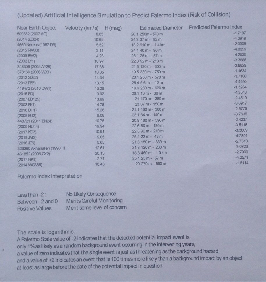 Published June 9, 2018 at 914 × 969 in Our Artificial Intelligence-based Asteroid Collision Risk Prediction project @ FutureWorld 2018, Toronto ‹ Return to post Leave a comment Cancel reply Δ