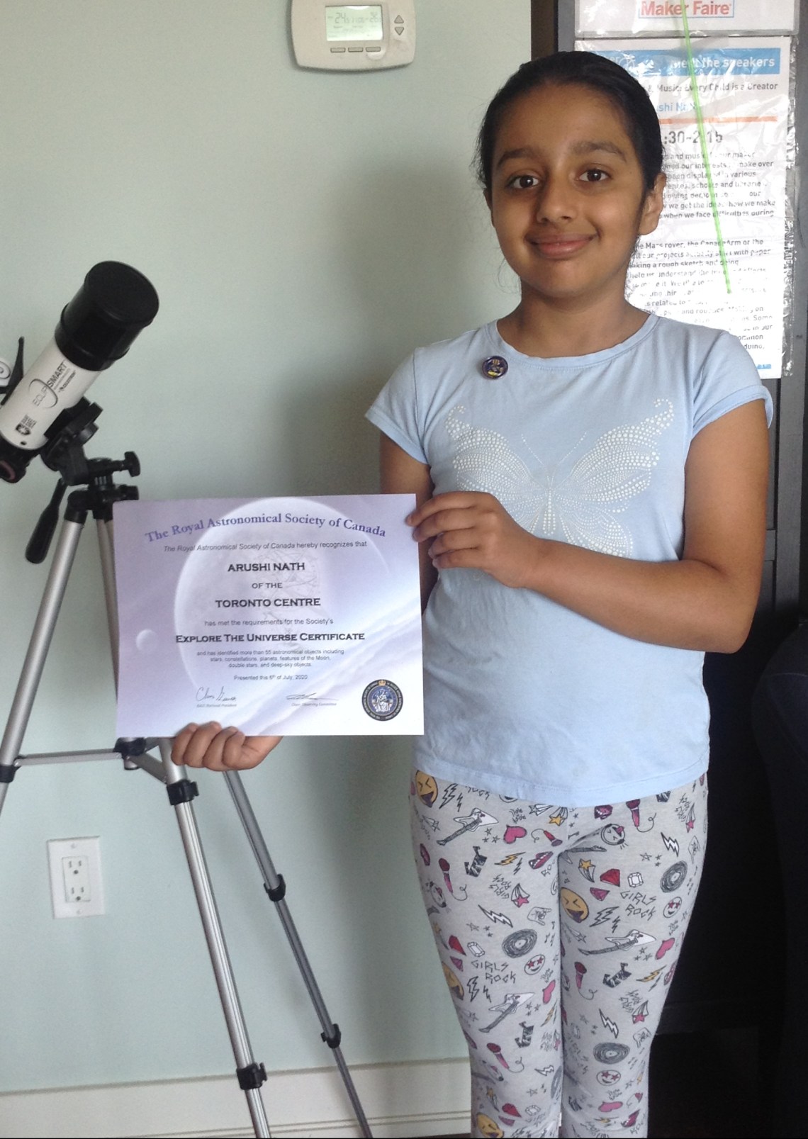 Arushi with her Explore the Universe Certificate and Wearing her first Observing Pin from RASC Published August 15, 2020 at 1772 × 2498 in Around the Universe in 6 years: How I completed my RASC Explore the Universe Certificate? ‹ Return to post Leave a comment Cancel reply Δ