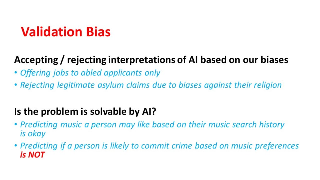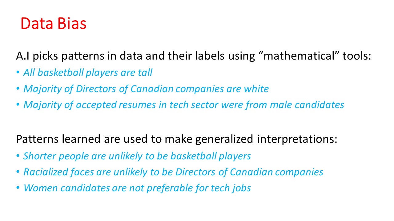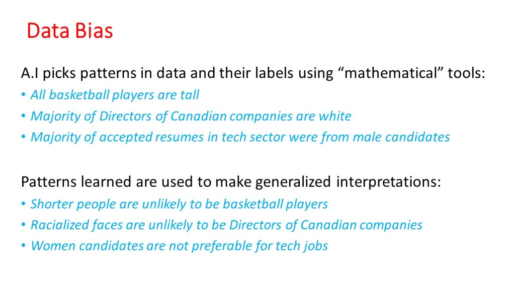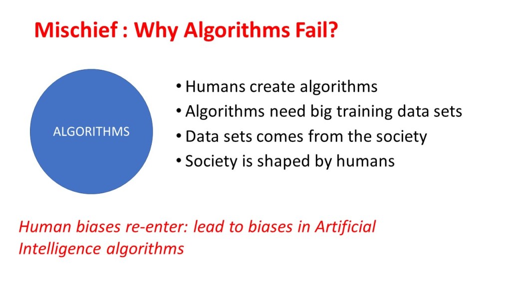 And this is where the mischief occurs in terms of algorithmic biases embedded in the information architecture and the datasets used for training the artificial intelligence algorithms. While biases have always existed in our society, these were relatively easier to understand in terms of where they were happening, why they were happening, who was responsible for it, and there was usually a recourse to correct those biases.