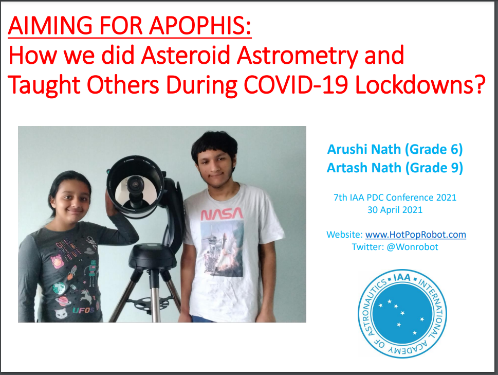 We are happy to present our paper: “Aiming for Apophis: How we used COVID-19 School Lockdowns as an Opportunity to Do Asteroid Astrometry” based on our several months of research in Session 12: Public Education & Communication of the 2021 PDC Conference.