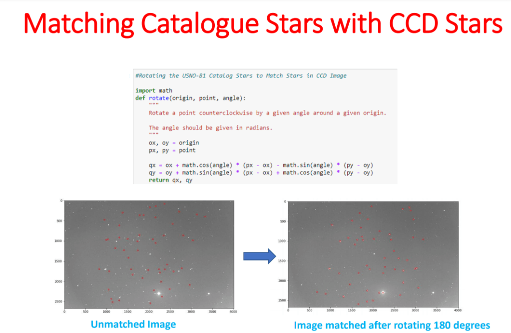 Getting access to telescopes is of little use if there are no observing plans. Observation plans need to be queued in advance for these remote telescopes. Creating an observing plan requires knowledge of several supporting software. We used an online version of the Stellarium software to see the position of the Moon in the star field to ensure that objects we image are not too close to the Moon. We used the Telescopius website to get the transit time of the asteroids (the time at which the asteroid would appear at the highest point in the sky for that location), and their Right Ascension (RA) and Declination (DEC) positions. We also got data from the NASA HORIZONS Web-Interface. One of the things we spent a lot of time learning were the celestial coordinates systems which were sometime in degrees, other times in hours, minutes, and seconds, and sometimes as a combination of two.