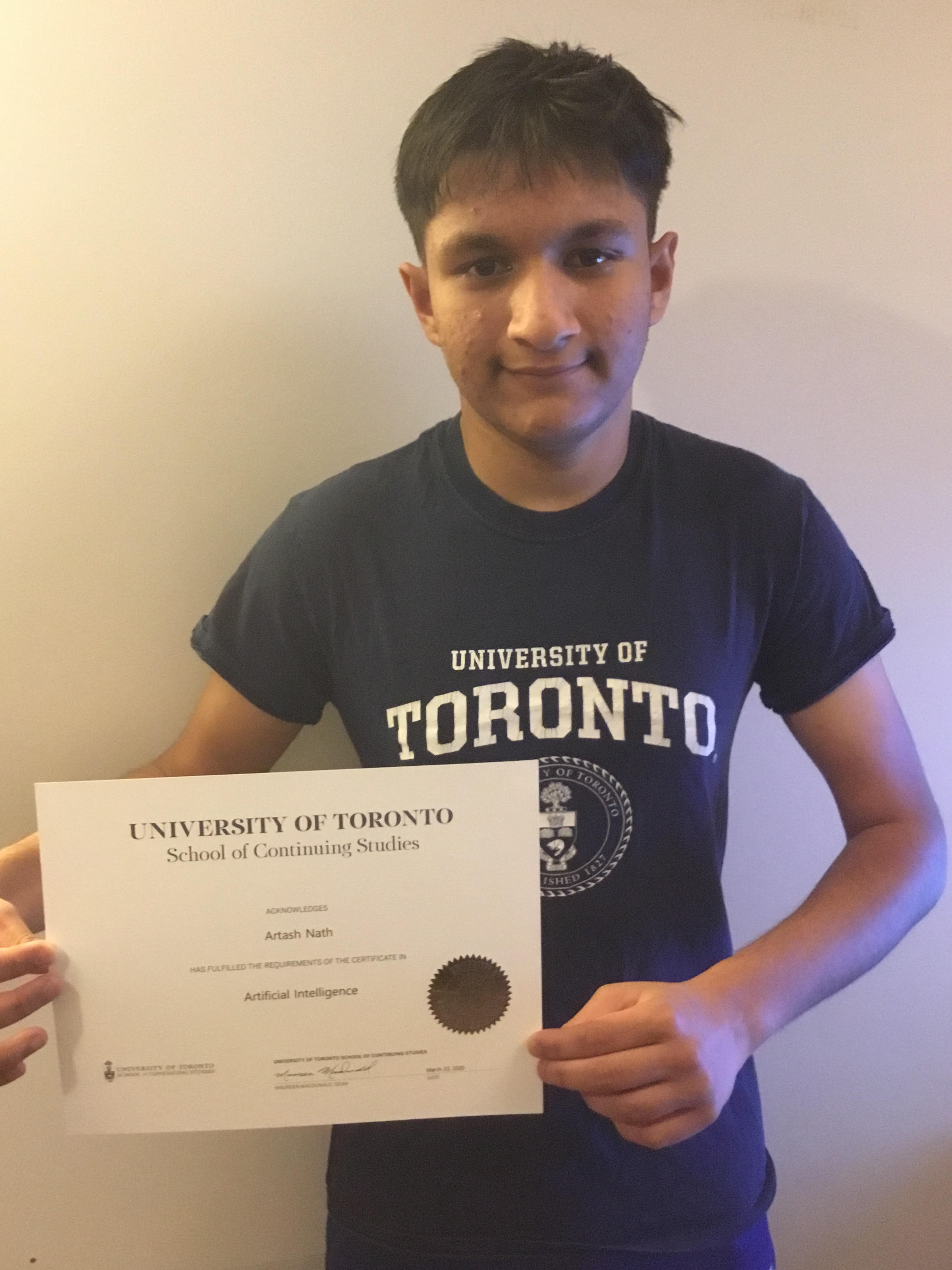 Getting a Certificate in Artificial Intelligence from the University of Toronto after a year-long journey while finishing Middle School