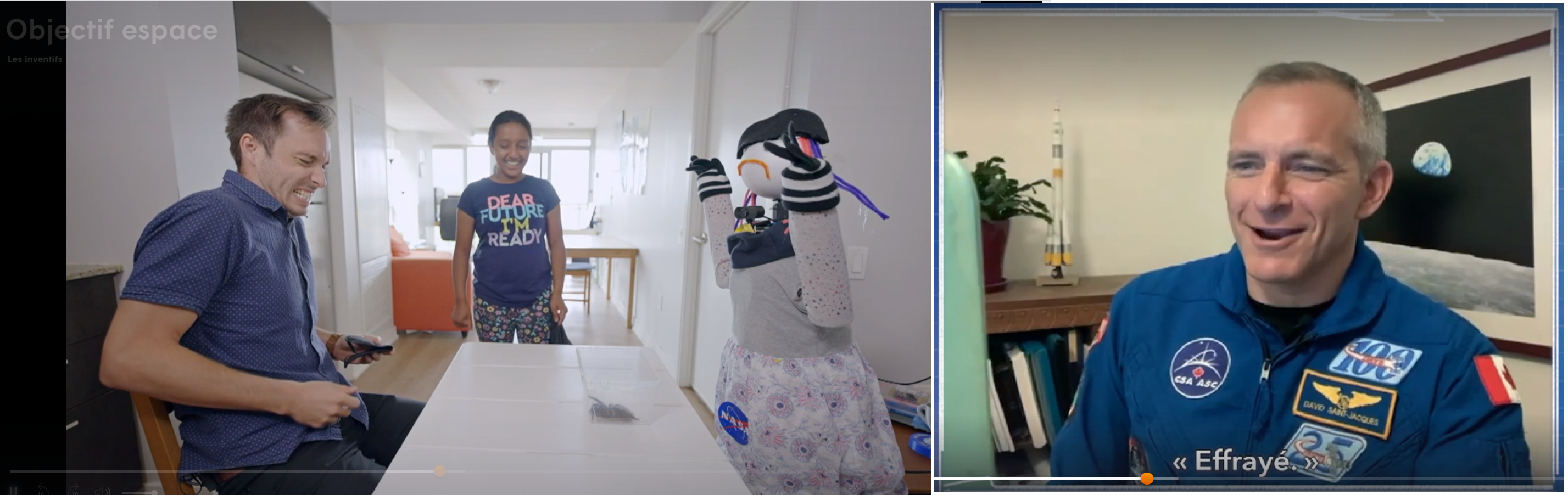 I am thankful to the entire production team at TV5 and the Canadian Astronaut David Saint-Jacques for giving me this opportunity to demonstrate my STEM, Robotics and Coding skills to a wider audience. I am also thankful to Canadian astronauts: Jeremy Hansen, Jenni Sidey-Gibbons, and Joshua Kutryk, whom I met at the Canadian Space Agency in Montreal on winning the Canadian Space Agency SpaceApps Challenge in 2017. During my visit to the Canadian Space Agency, I saw several space robots, rovers, and the Canada Arm, which gave me new ideas on how I could support the Canadian space mission.