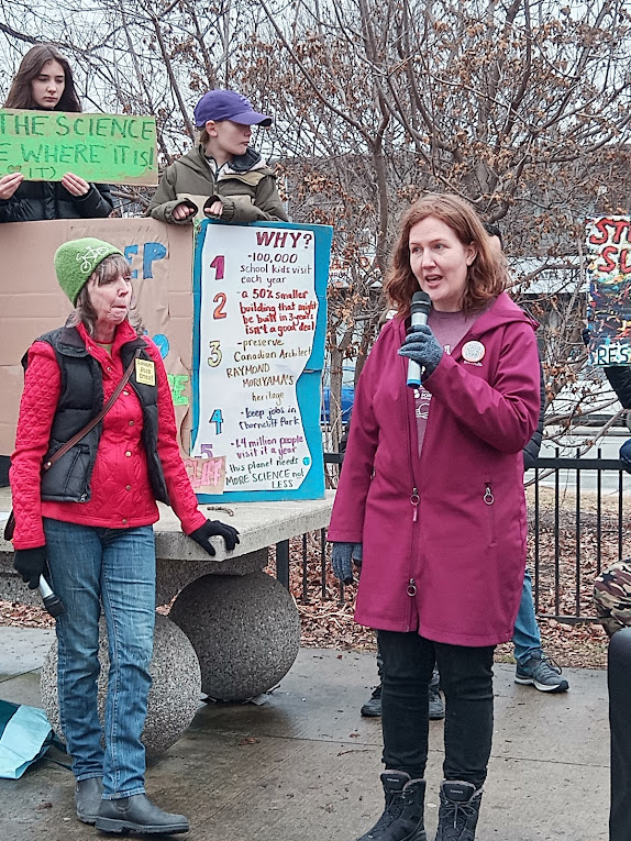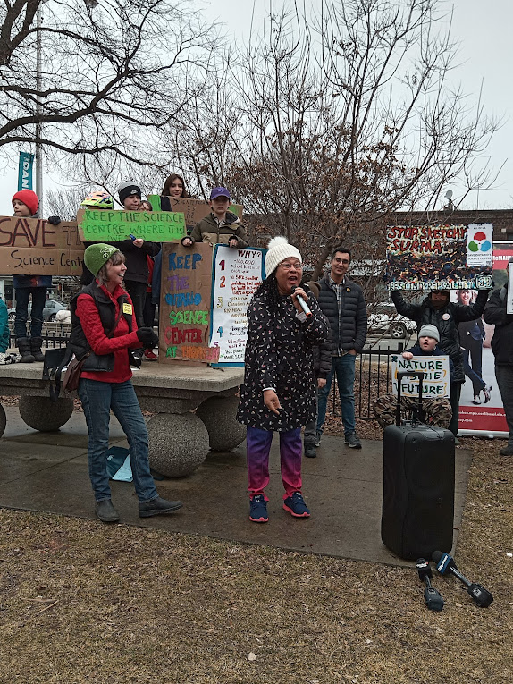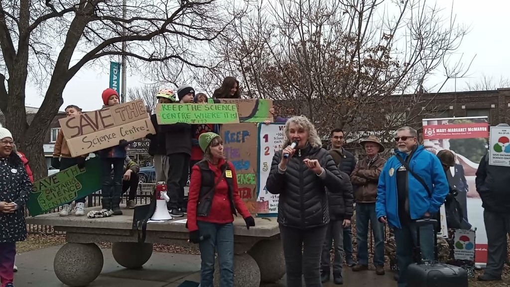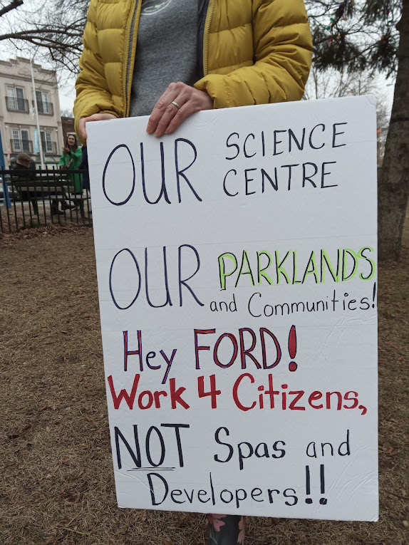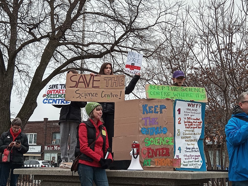 Here is the text of my speech I gave at the community rally organised by the Save the Ontario Science Centre group (sign the petition on their website) in the East end of the city at the Lynn Park near Danforth avenue and Woodbine park on 3 March 2024. Over a 100 people from the community and beyond joined the rally. It was a festive event with music, posters, chants, whistles and lots of kids and their parents. So many of us had an opportunity to share our experiences and visions of the Ontario Science Centre.