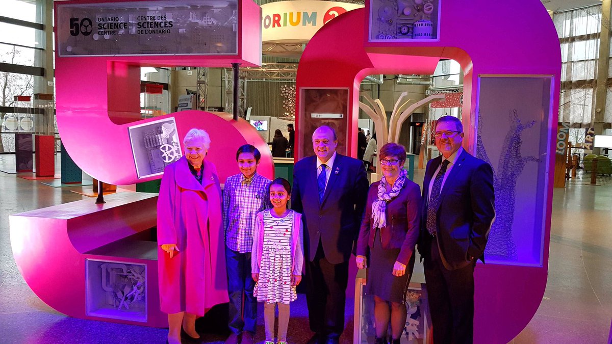 Arushi with her brother Artash with the Honourable Elizabeth Dowdeswell, Lieutenant Governor of Ontario, the Honourable Michael Tibollo, Minister of Tourism, Culture and Sport, and Maurice Bitran, CEO of the Ontario Science Centre. They were invited speakers at the Ontario Science Centre 50 years celebration on 24 January 2019 and gave the speech “Dare to Dream Big”.
