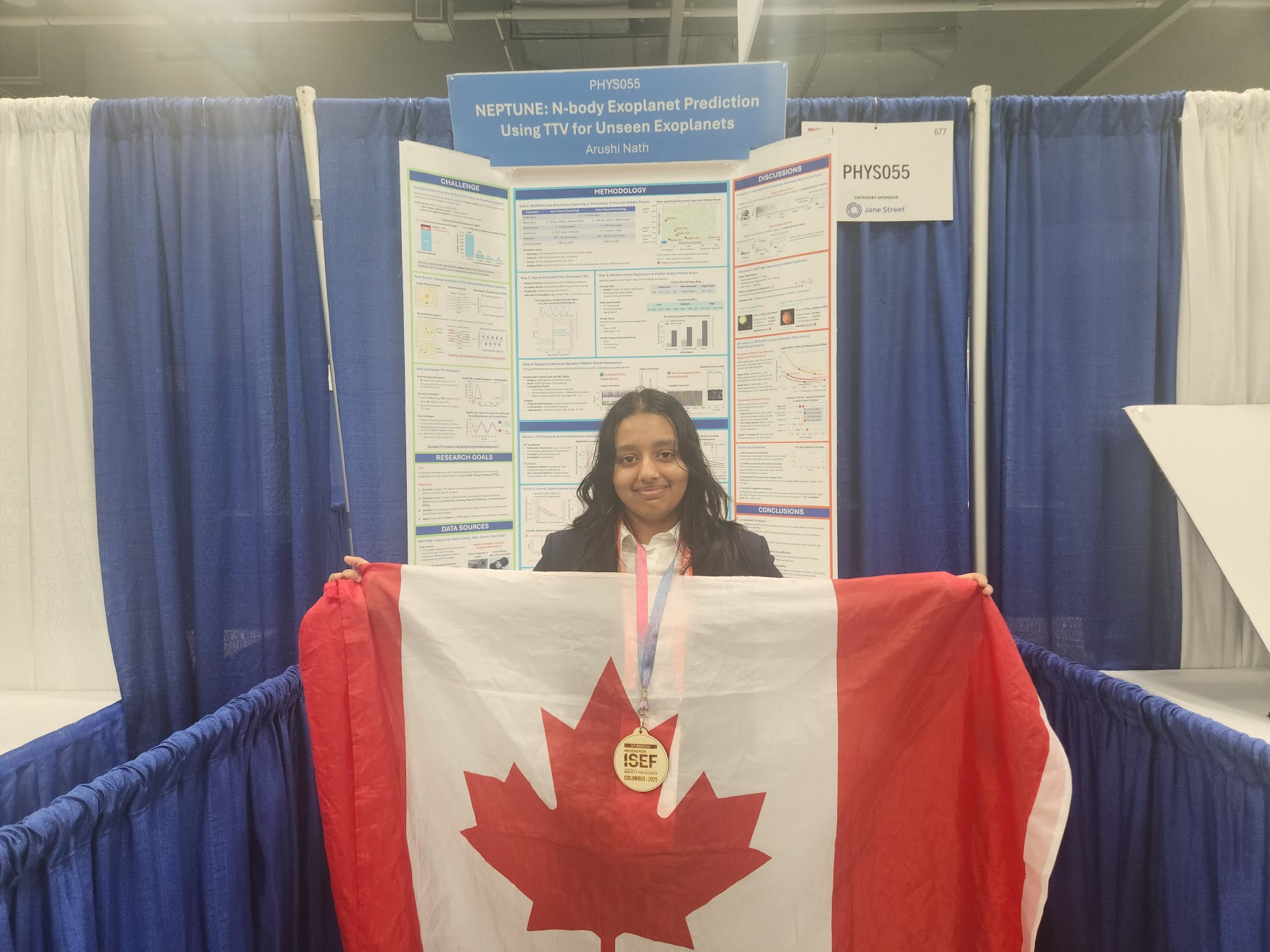Each year, ISEF hosts a cultural showcase where participants from each country present a poster and short video highlighting their national identity. Together with two fellow Canadian finalists, we created a dynamic 5-7 second video capturing Canada’s unique spirit.