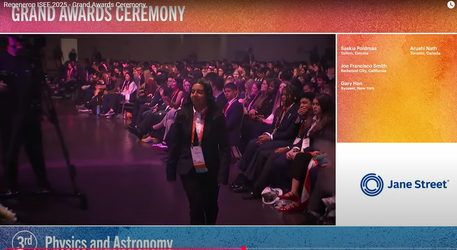 I entered the project under the ISEF’s Physics and Astronomy Category which had almost 80 submissions from other countries. Projects in this category spanned a diverse range, from quantum computing and artificial intelligence to spectroscopy and astrophysical phenomena. The project was well-received and I had 7 individual judging interviews of 15 minutes each. It was a very proud moment for me when my name was called on the stage to have won the Third Grand Award.