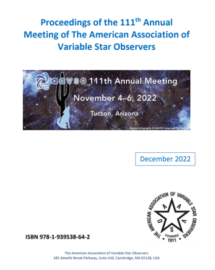 Detecting Unknown Asteroids using Robotic Telescopes, Open Data, and Python. Arushi Nath. Proceedings of the 111th Annual Meeting of The American Association of Variable Star Observers. December 2022.